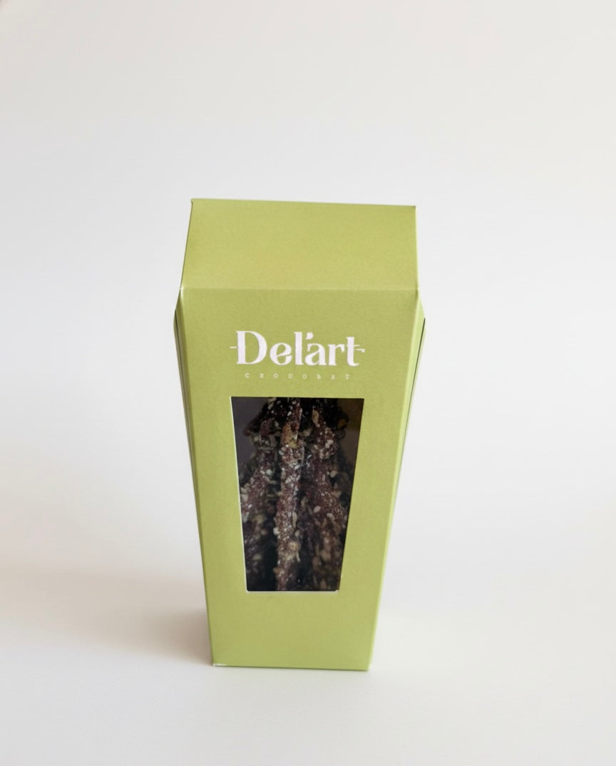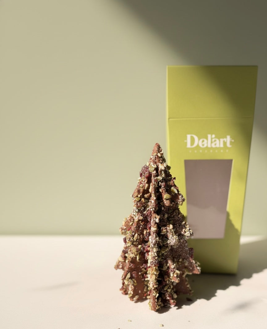 Nuestro árbol de chocolate de leche —aprox. 100 gramos de puro sabor— está hecho a mano con una mezcla perfecta de cranberries, frutos secos y semillas de zapallo que le dan textura, color y un crujido irresistible.