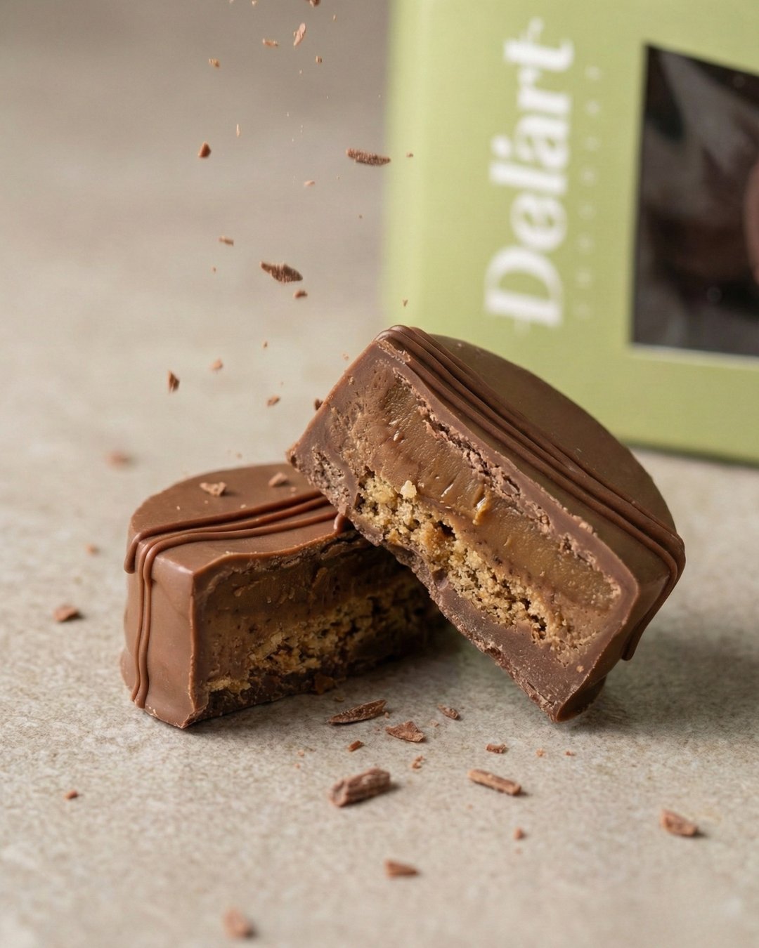 La combinación más adictiva: praliné de avellana, galleta de avellana horneada, un toque irresistible de caramelo salado y cobertura de chocolate de leche. Cremoso, crujiente y gloriosamente equilibrado.