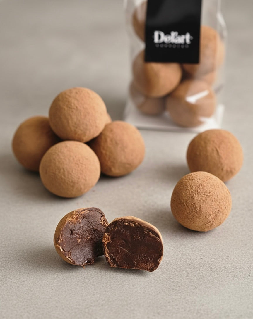 Cada trufa combina una cobertura crocante de cacao con un interior suave y cremoso, logrando un equilibrio simple y profundo que siempre invita a repetir.